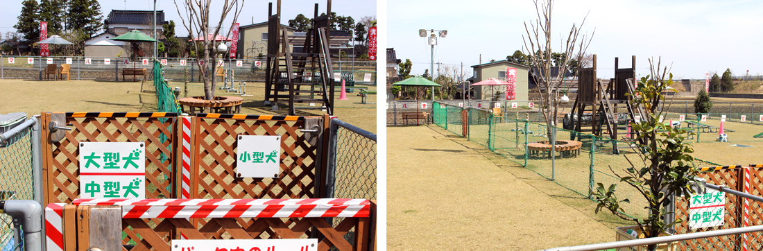 →当ドッグランでは、小型犬と中型・大型犬で分かれていますが、分かれている中でも体格差はありますので、注意して見ていて下さい。