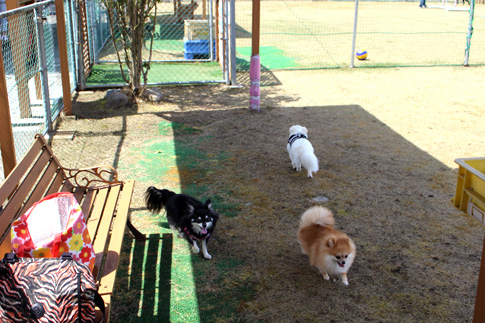 →既に他の犬がいる場合は、ゲートを通る前に柵の手前で待機します。たいてい自分のワンちゃんに気づき、近寄ってきます。ネット越しに犬同士を合わせて、ワンちゃん同士が興奮しないことを確認します。どちらかの犬が興奮して吠える、または攻撃するような行動を見せたら、犬が落ち着くまで待ったほうがよいです。他のスペースにワンちゃんがいない場合は、小型犬でも大型犬のスペースを使っていただいて問題ありません。